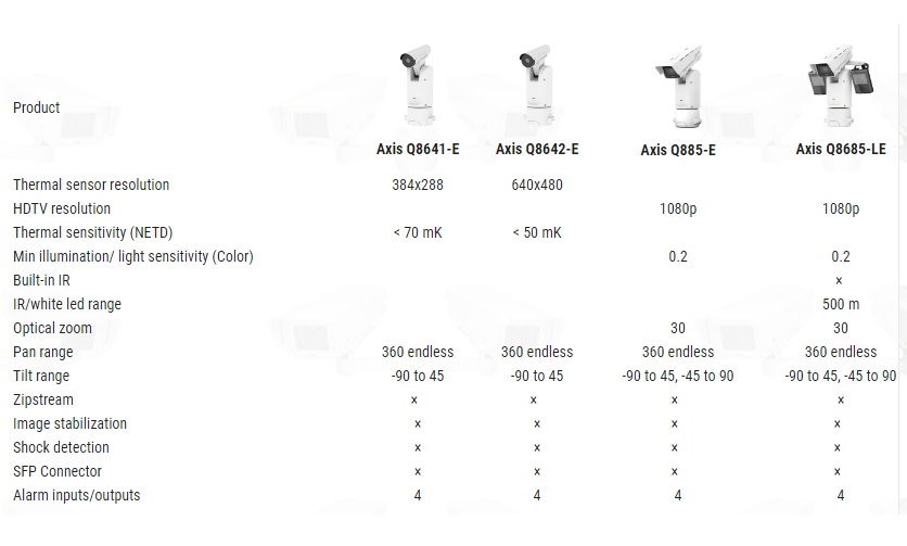 Mã sản phẩm trong cùng Series: Axis Q8641-E, Axis Q8642-E, Axis Q885-E, Axis Q8685-LE